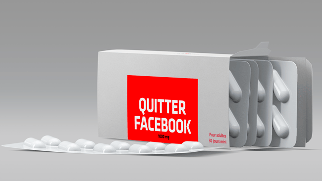 Fausse boîte d'un médicament pour lutter contre l'addiction au site web Facebook.com